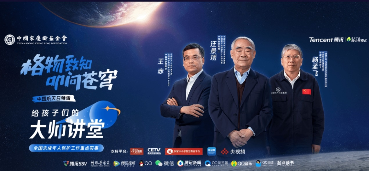中国宋庆龄基金会与中国教育电视台及腾讯视频携手为青少年定制“给孩子们的大师讲堂”,用健康、优质内容赋能青少年全面发展。该公益项目将邀请科学家、艺术家、时代楷模等1000位名人名家给孩子讲科学故事、谈艺术文化、分享成长经历。